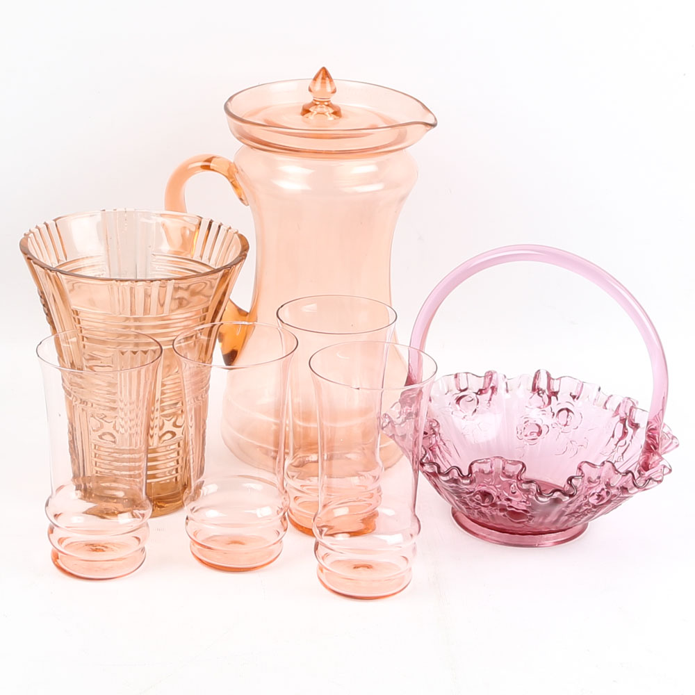Download Depression Glass Pink Basket Gif. This guest or night set consists of a tray, tumbler and pitcher with lid. Depression glass comes in an array of collectible patterns including tea room, princess, royal lace, mayfair, and american sweetheart.